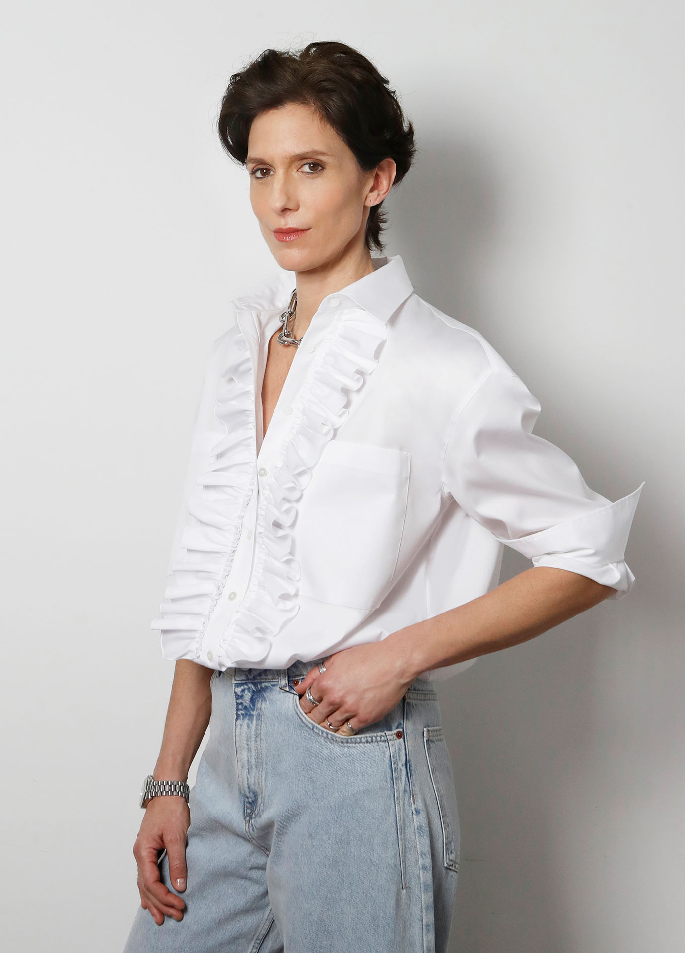 • Abertura con tapeta central y fantasía de volantes en forma de chorreras