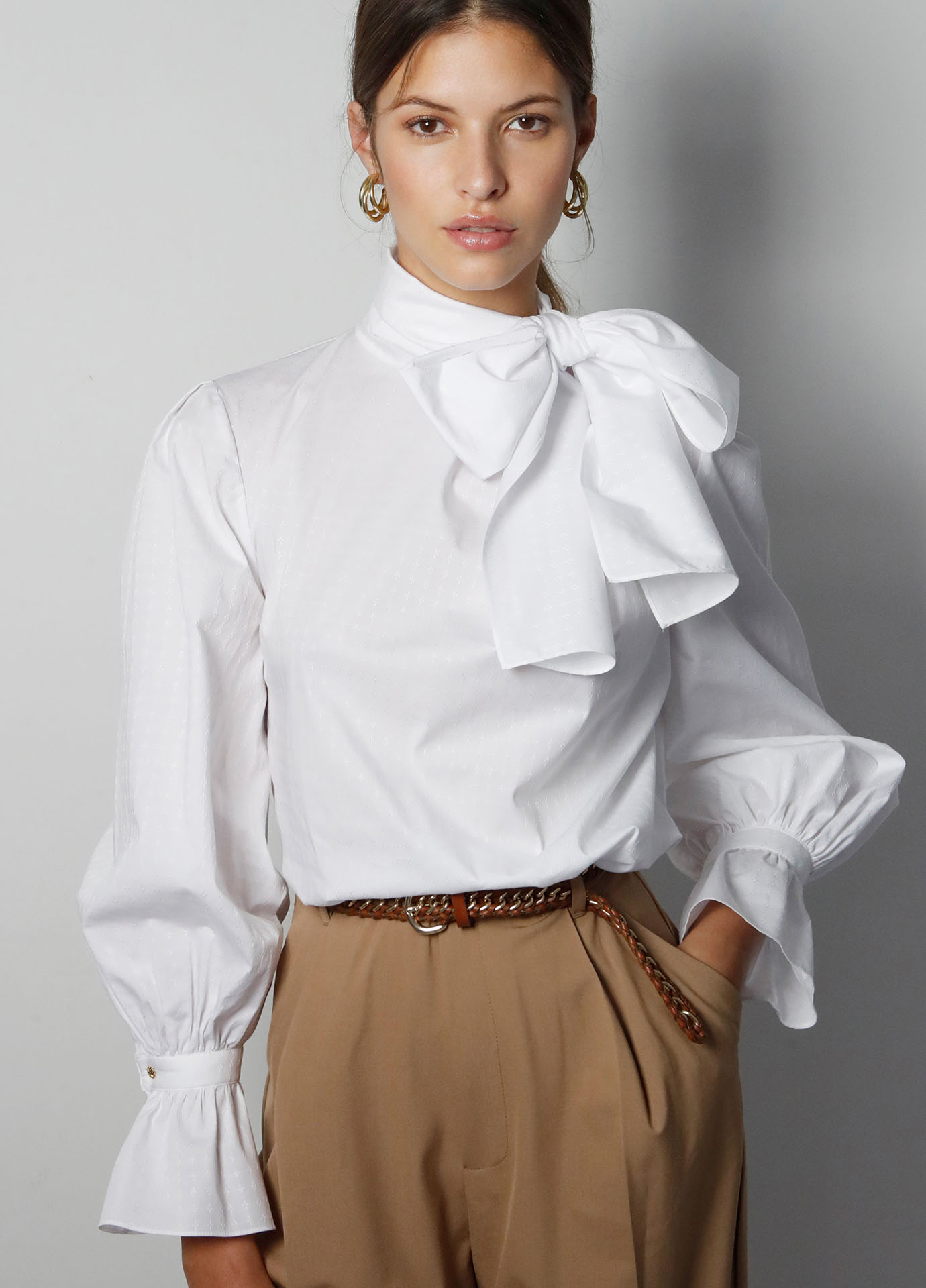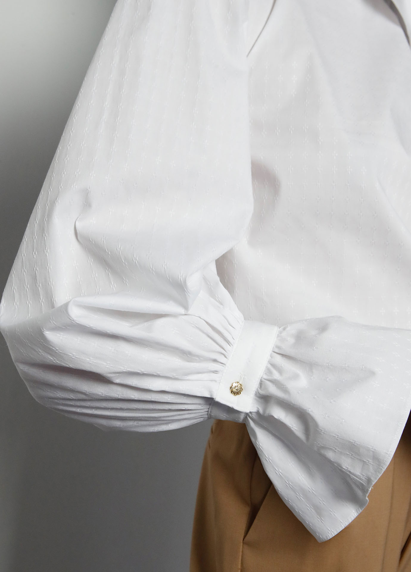 • Mangas de volumen con puños en forma de campana